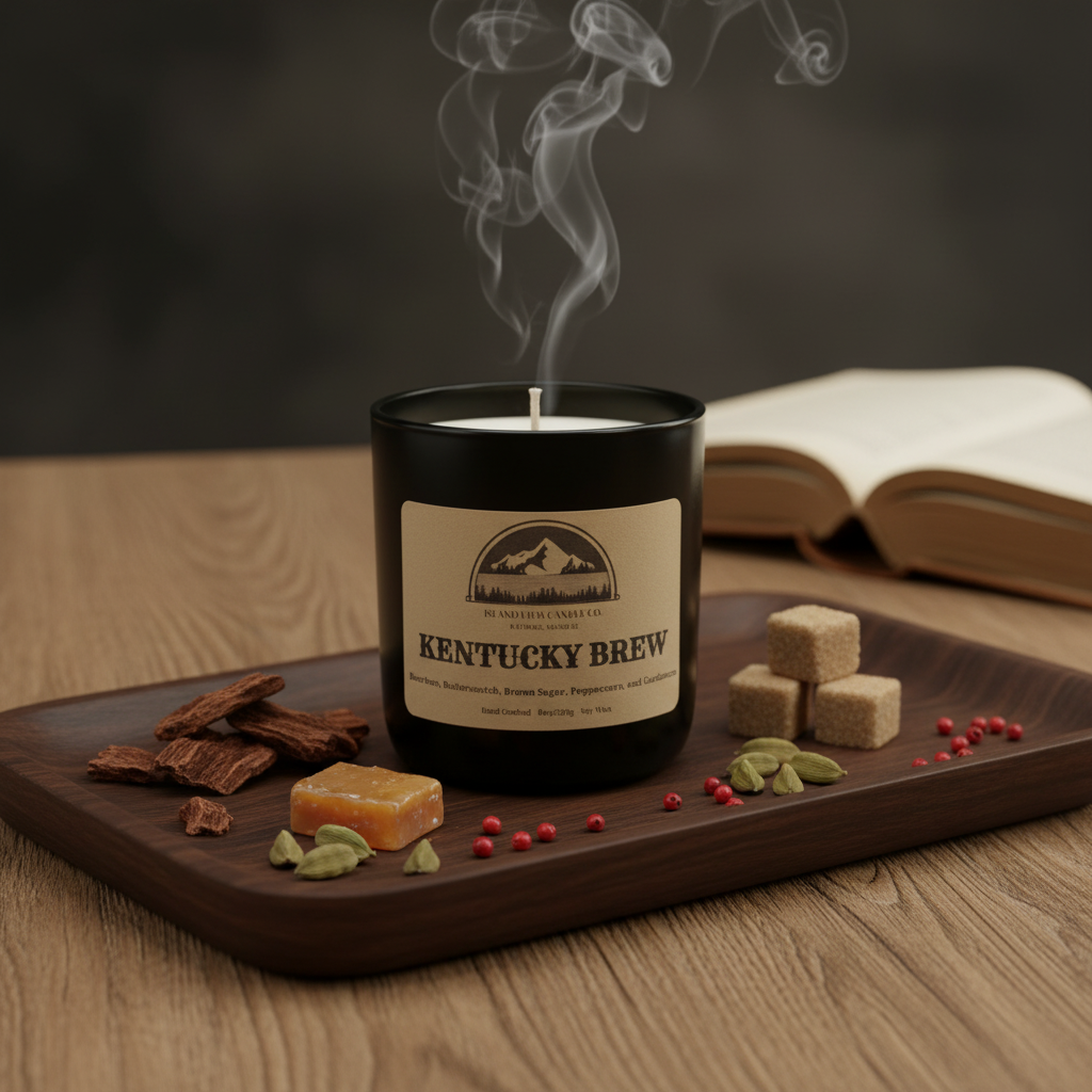 Indulge your senses with this captivating candle, where the sweet essence of butterscotch and brown sugar takes center stage—the enticing top notes of peppercorn and warm cardamom transport you to cherished moments of homemade treats. At the heart of this fragrance, aged bourbon adds luxurious warmth, while the rich notes of oak, smoky patchouli, toasted vanilla, and mellow caramel create an unforgettable, indulgent experience. This candle conjures a tactile landscape of rolling fields, wooden stills, and a touch of storied bourbon heritage, inviting you to inhale the spirit of Kentucky craftsmanship.